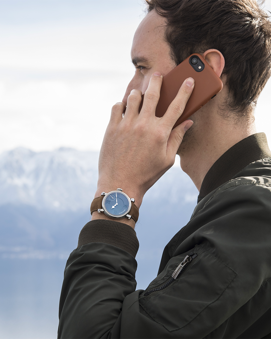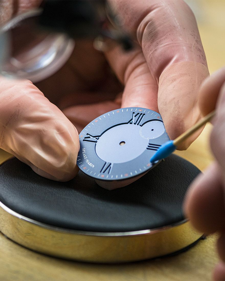 Two levels blue dial: polished finish in the middle and mat finish in the background.