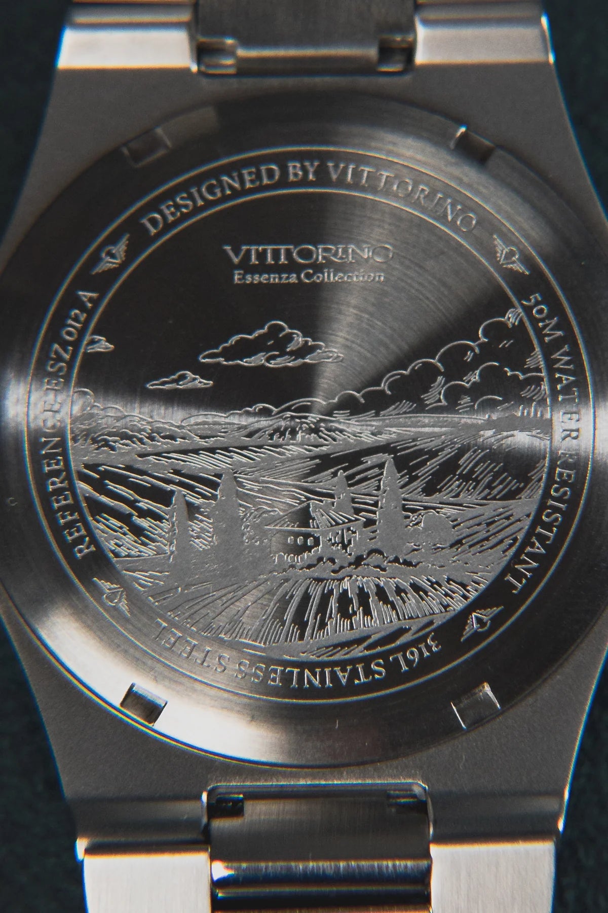 The Essenza Cipresso features a cypress green dial, inspired by the vibrant texture and shades of Italian cypresses. With minimalist lines and a timeless design, it combines tradition and modernity in a single piece. The refined markers and polished finish capture light with subtlety, highlighting the harmony between simplicity and sophistication.