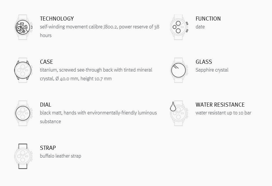 Even with a slightly larger diameter of 40 mm, the FORM A Titan is immediately the most striking model in the collection. With its sporty character and water resistance up to 10 bar, this watch is a hardy companion even in the toughest of activities. Casing and buckle made from skin-friendly titanium.