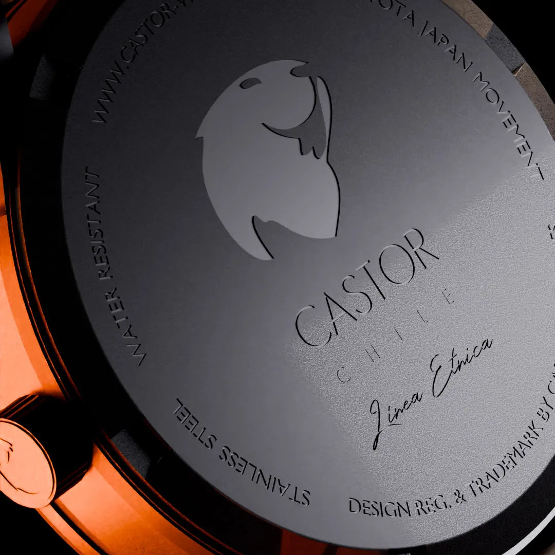 The Hain 2.0 watch is the modernized and improved version of the Ethnic Line that has characterized us since our beginnings as a brand. In a renewed design, we have emphasized the solidity and total quality of this watch, using a stainless steel case, double-curved dome glass and a high-strength Italian lambskin strap. The design pays tribute to the pre-Columbian people of the extreme south of Chile, the Selknam. The dial is made of walnut wood and metal, with screen printing applications, with one of the participants of the "Hain" ceremony and its characteristic geometry and colors. It also comes with the date function, using an engine from the Japanese brand Miyota Citizen. Water resistant 50 meters (5ATM), you can bathe and swim with it.