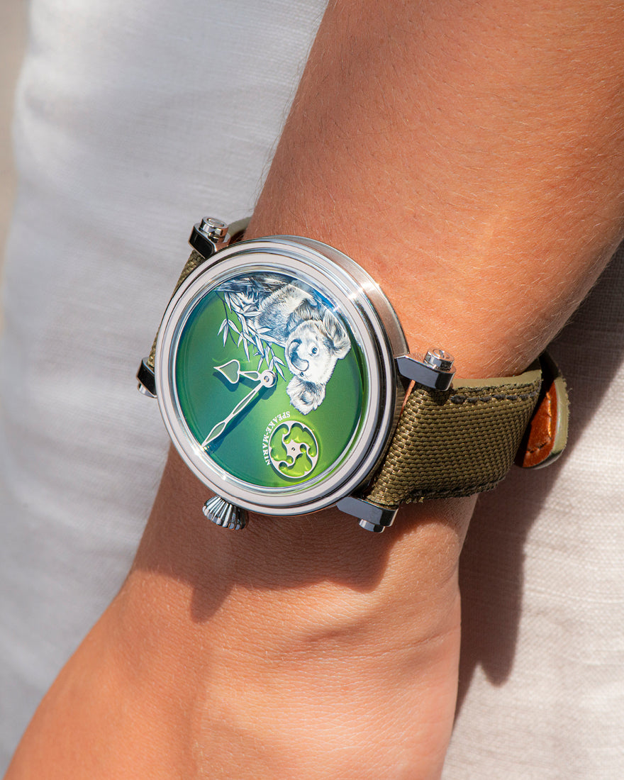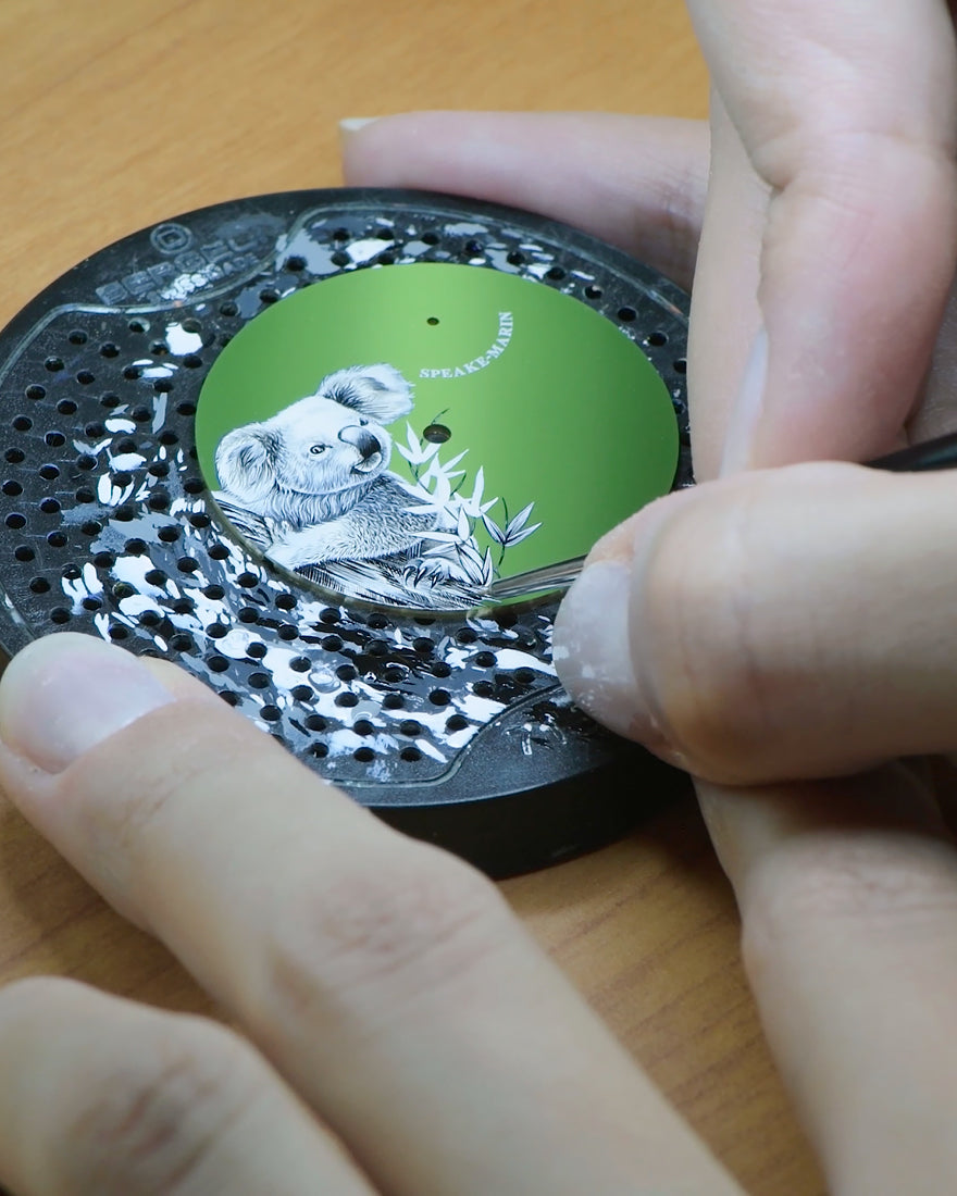 Micro painting Koala dial in green* gradient lacquer with rotating topping tool.
