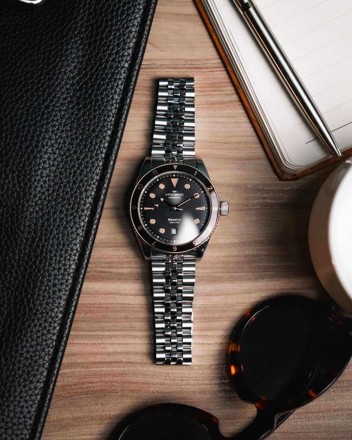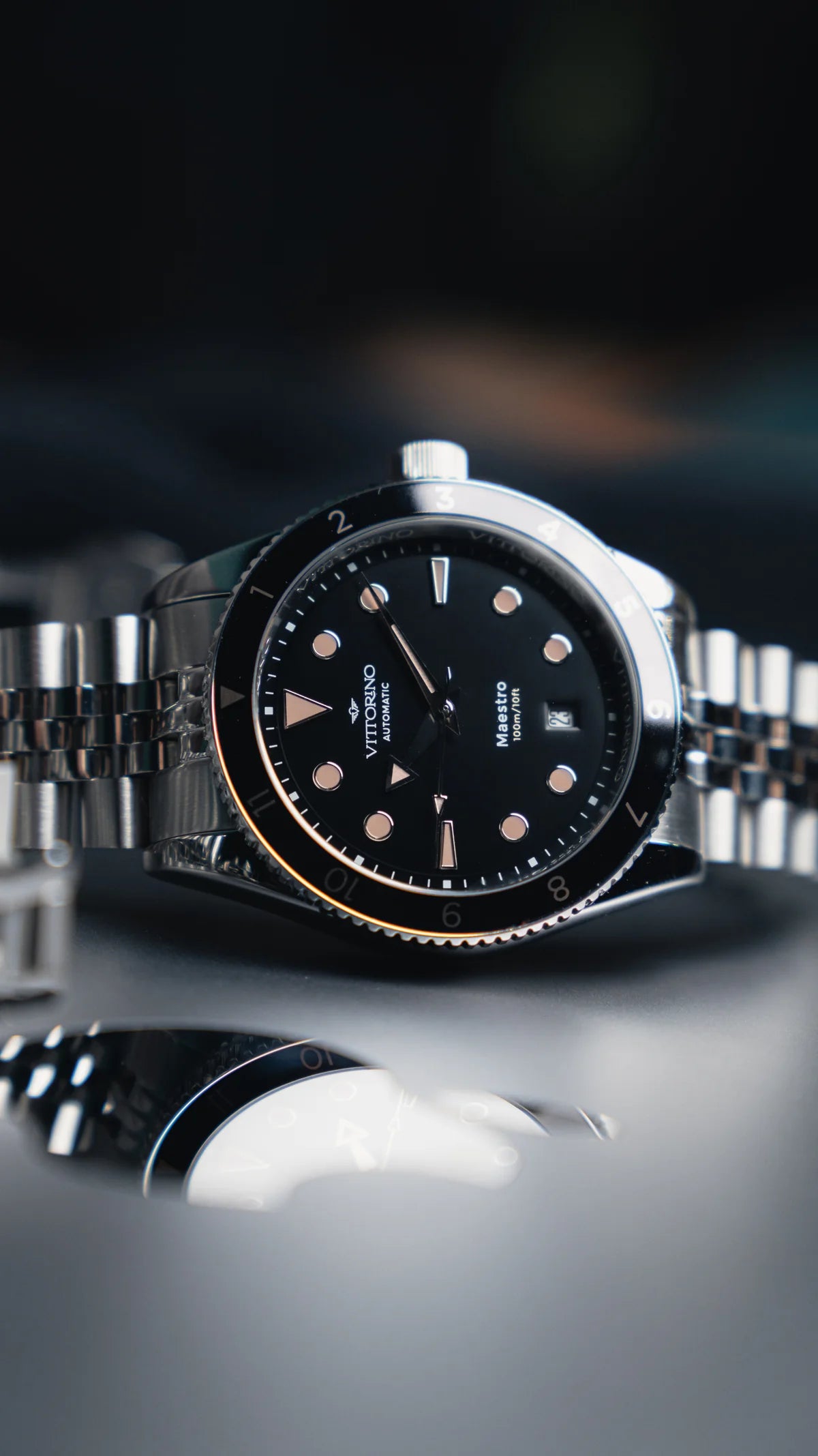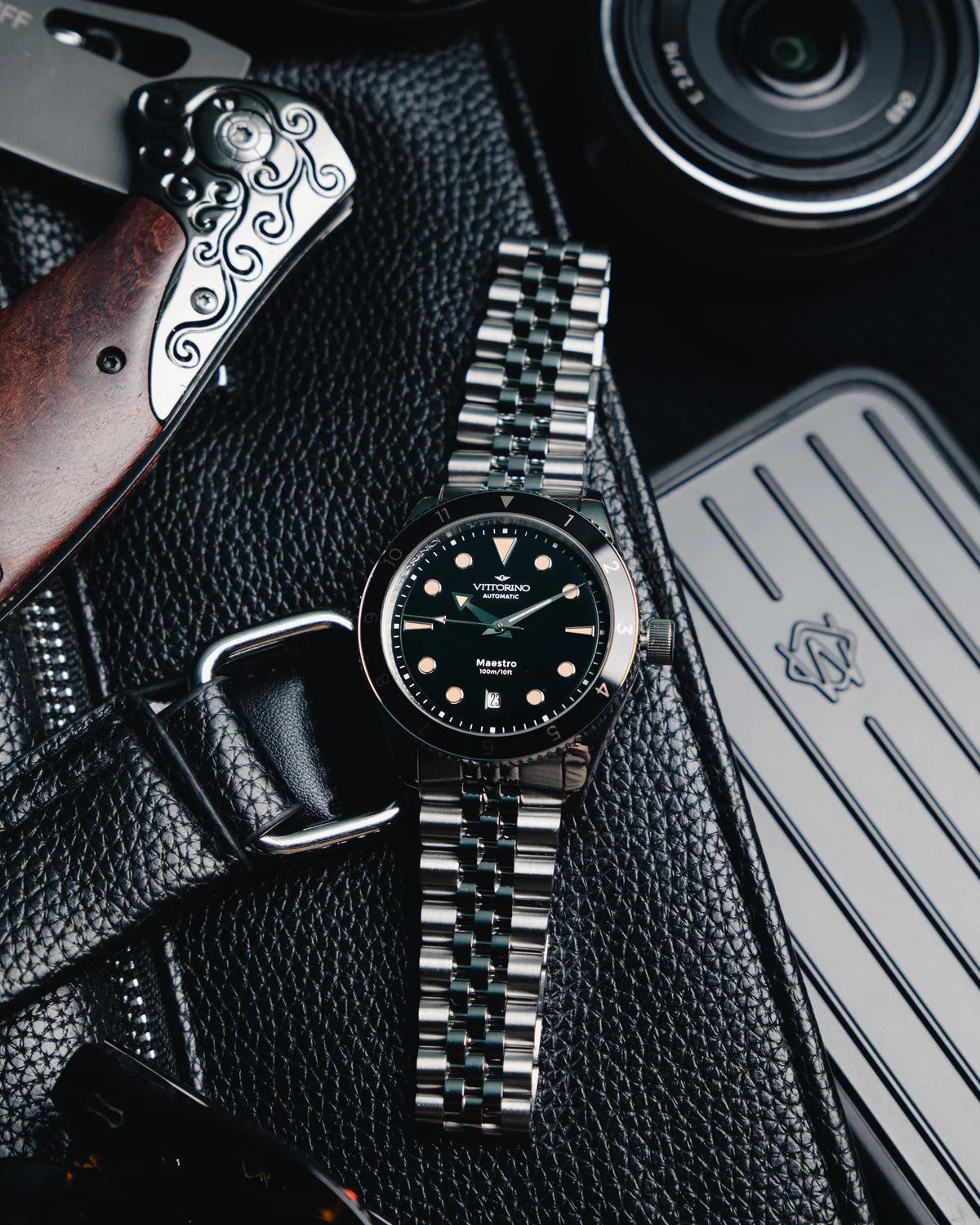 Vittorino's Onyx is a celebration of elegance and mystery. With its matte black dial and 316L steel case, this watch combines a timeless design with an aura of sophistication and incomparable mystery.