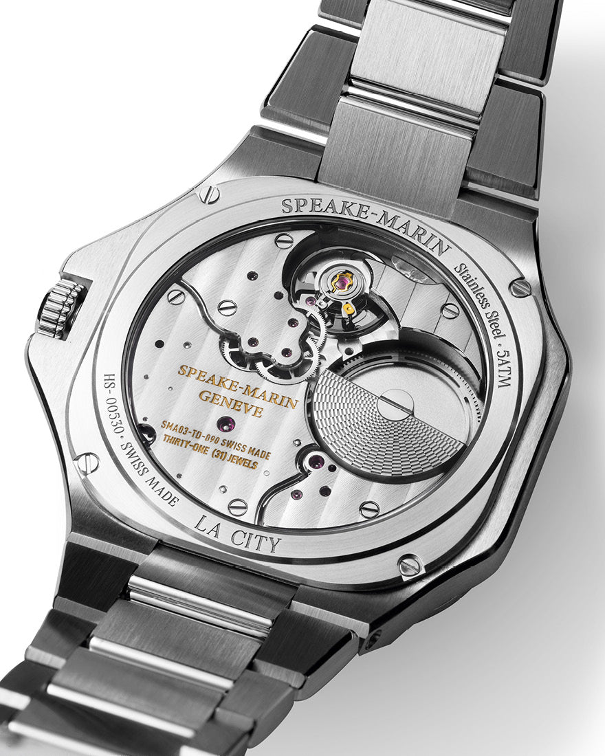 In-house manufacture self-winding calibre SMA03-TD with fully integrated micro-rotor