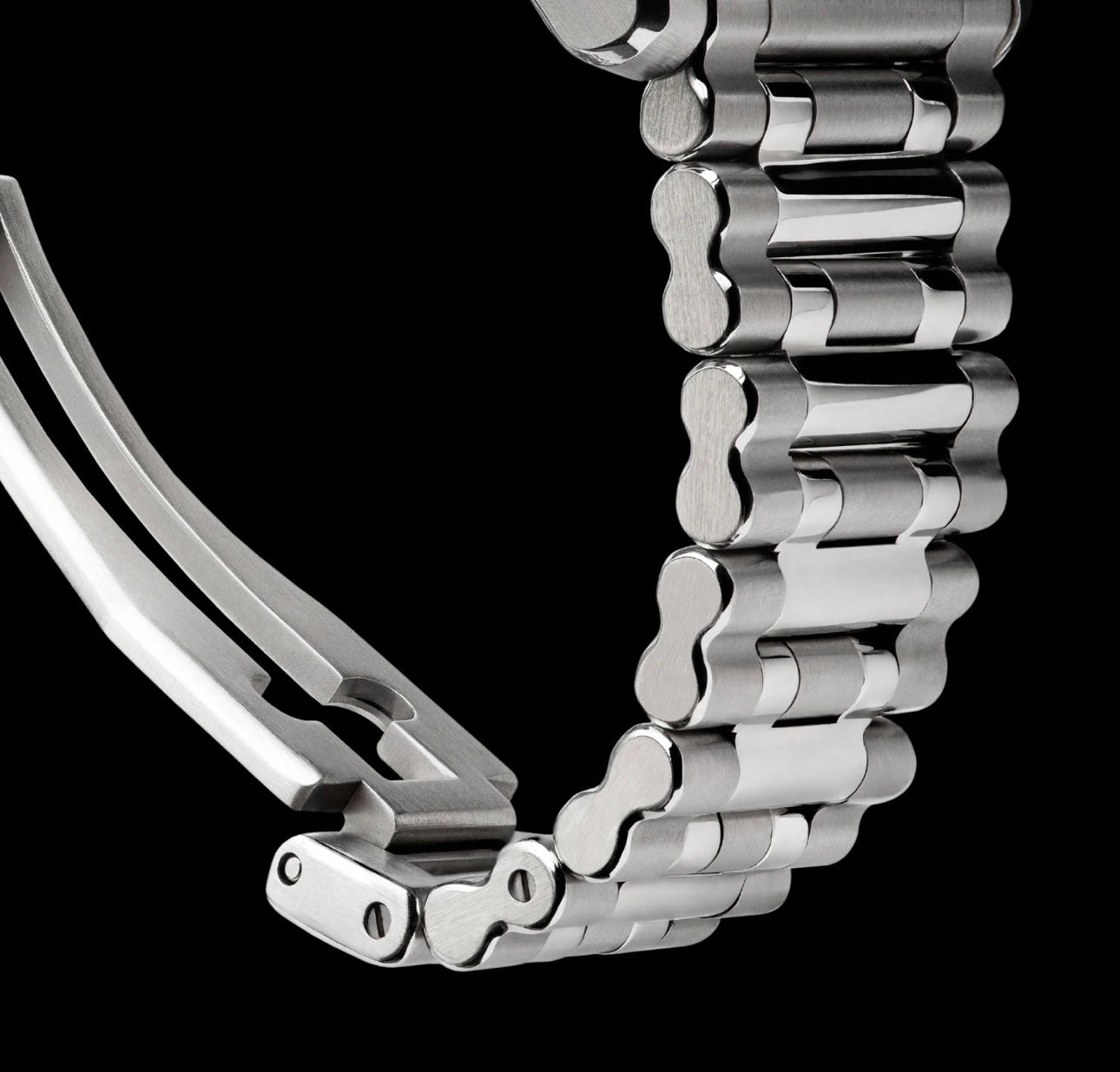 Quick release stainless steel bracelet with micro-adjustment feature.