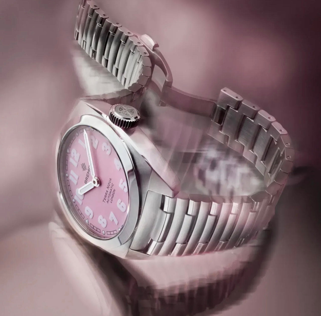The Limited Edition Terra Nova 38 'Pink' pairs a refreshing pink dial with a compact 904L steel case, offering outstanding lustre, everyday durability, and all-day comfort.