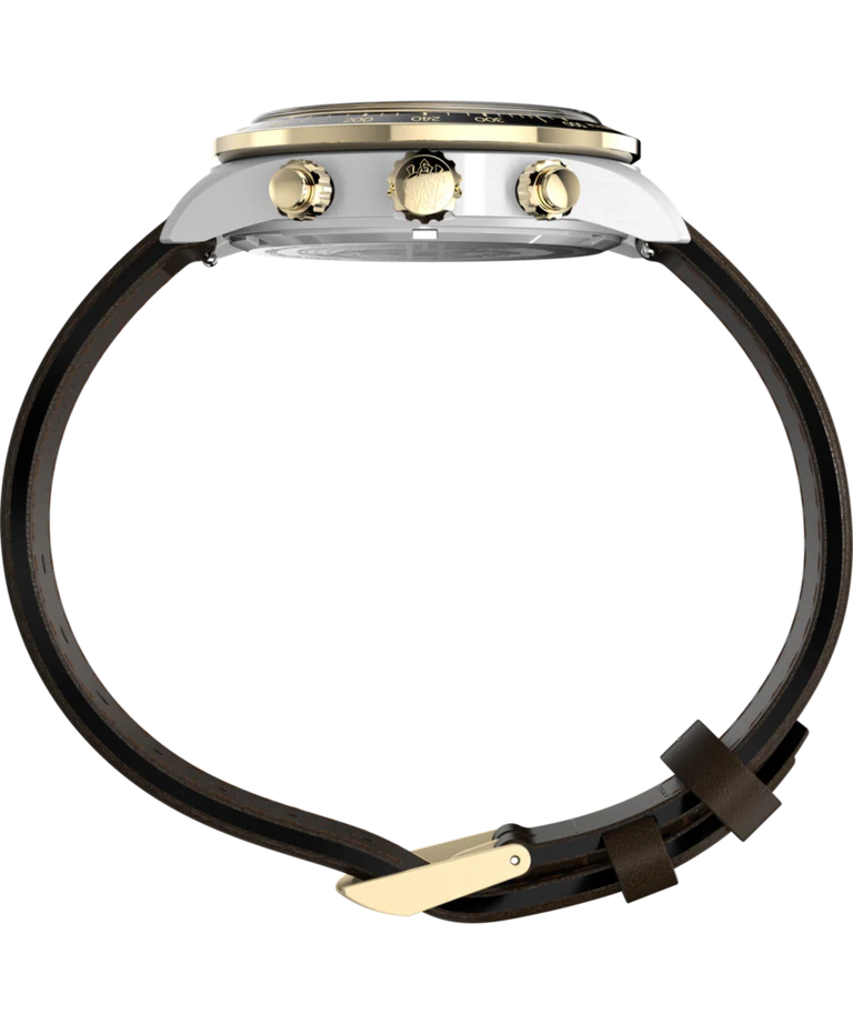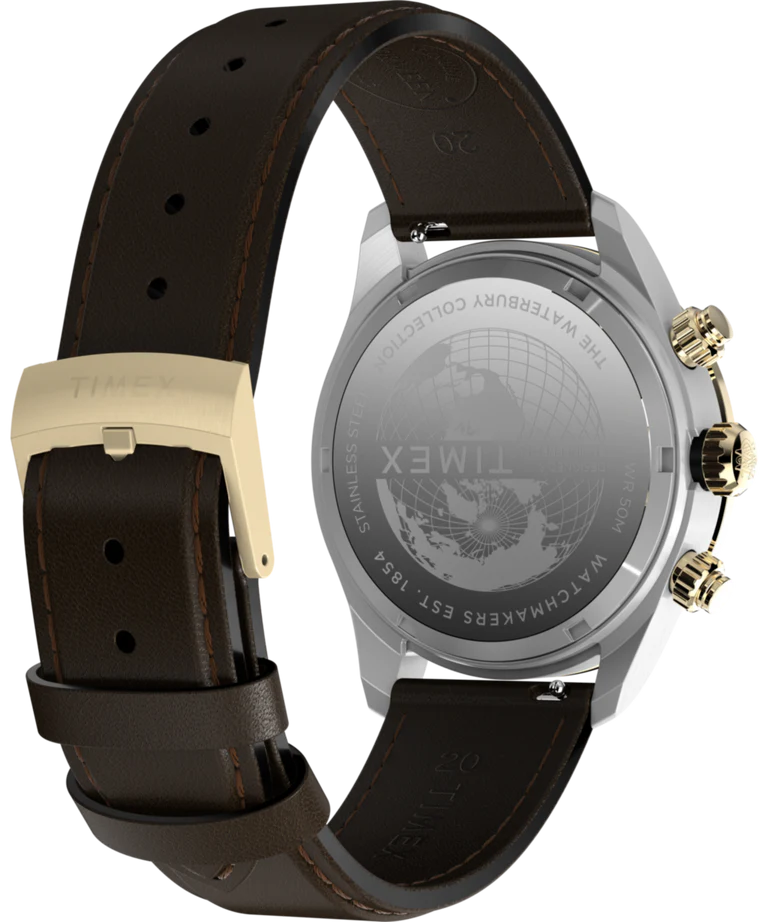 The Waterbury Heritage Chronograph combines modern functionality with timeless design, featuring a chronograph to track elapsed time and a black tachymeter bezel for determining average speed. Complementing its 39mm brushed stainless-steel case is a coordinating brushed and polished stainless-steel bracelet with self-adjustable links for easy sizing without the need for tools. The silver-tone dial is accented by contrasting sub-dials and safeguarded by an anti-reflective mineral glass crystal for enhanced clarity. Luminant hands ensure visibility in lowlight conditions, while applied indices and intricate detailing on the crown and pushers add a refined touch.